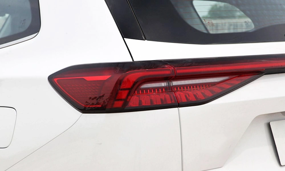 Открытый выхлоп, разнесенные две трубы с левой и правой стороны с прямоугольной накладкой в бампере